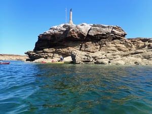 There is a red and white beacon (although rather faded) and the aerials associated with an isolated weather station, which no longer functions. on the summit of the main rock. If conditions allow, later in the season, then a climb to the top of the rock gives superb views across the reef, giving an idea about the scale of the Minquiers. As both Cormorants and Common Terns have been know to breed on this rock it is important to avoid landing during the breeding season.