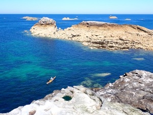To the west lies Newfoundland, a bit excessive for a day trip so we returned to the east, the flooding tide allowing us to explore channels and areas of the reef, which had been closed to us on the paddle out.