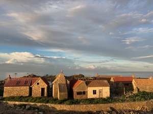 Large clouds building over the Normandy coast whilst the Minquiers were bathed in the warm evening light.
